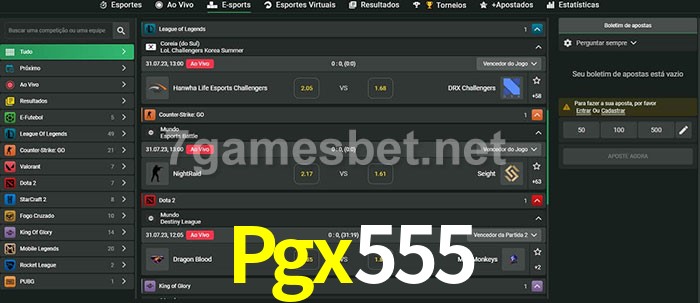 O Pgx555 oferece uma grande seleção de opções de apostas em e-sports com probabilidades competitivas
